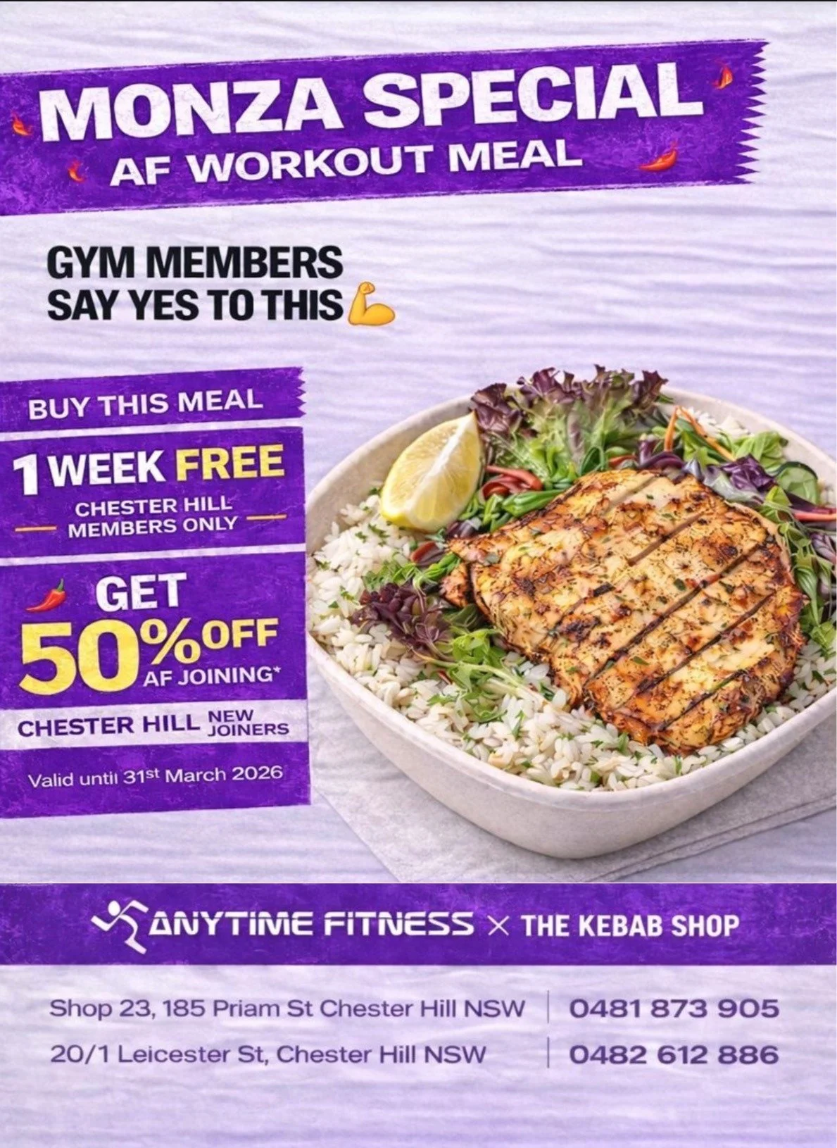 For a limited time, Anytime Fitness Chester Hill has teamed up with local favourite The Kebab Shop to serve up a collab that’s all about community, gains, and great food.